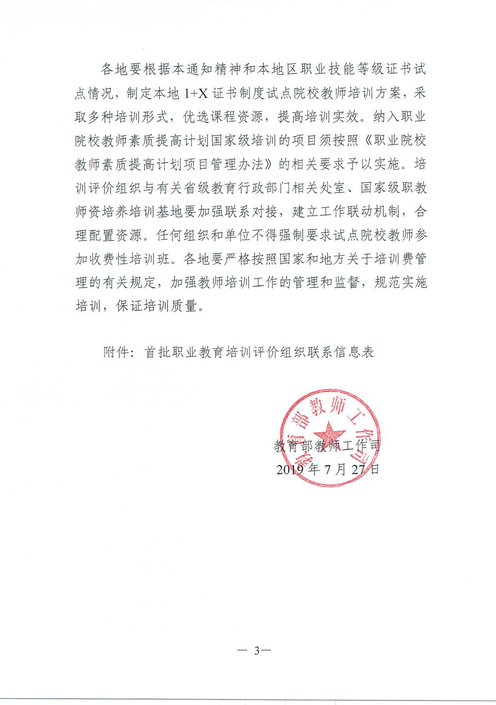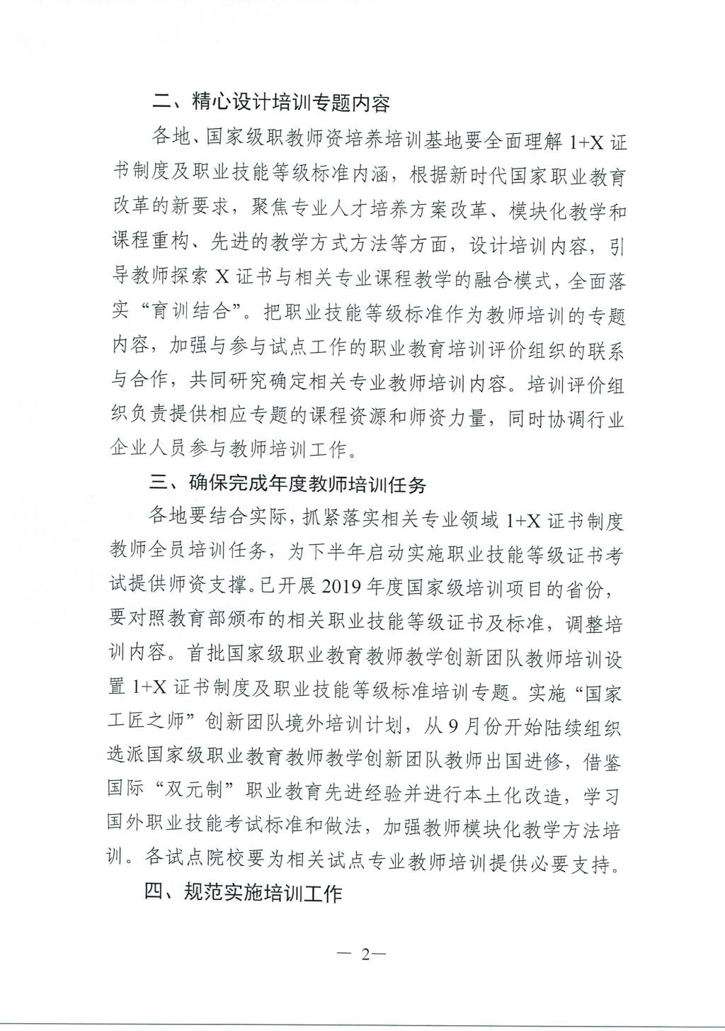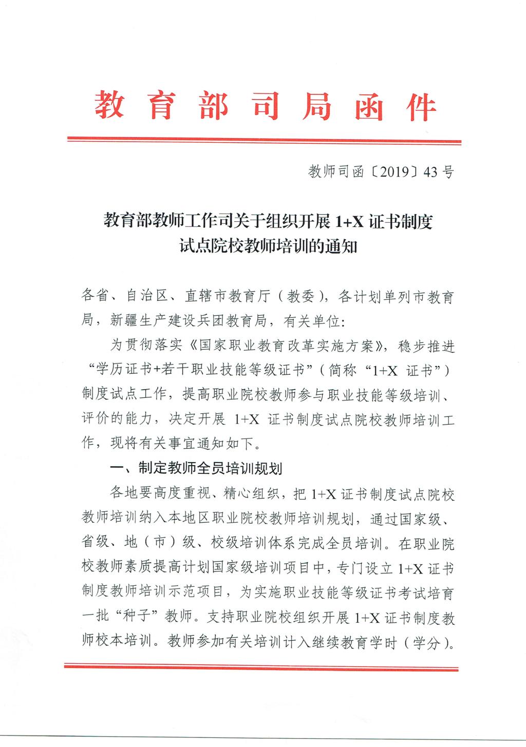 教育部教师工作司关于组织开展1+X证书制度试点院校教师培训的通知