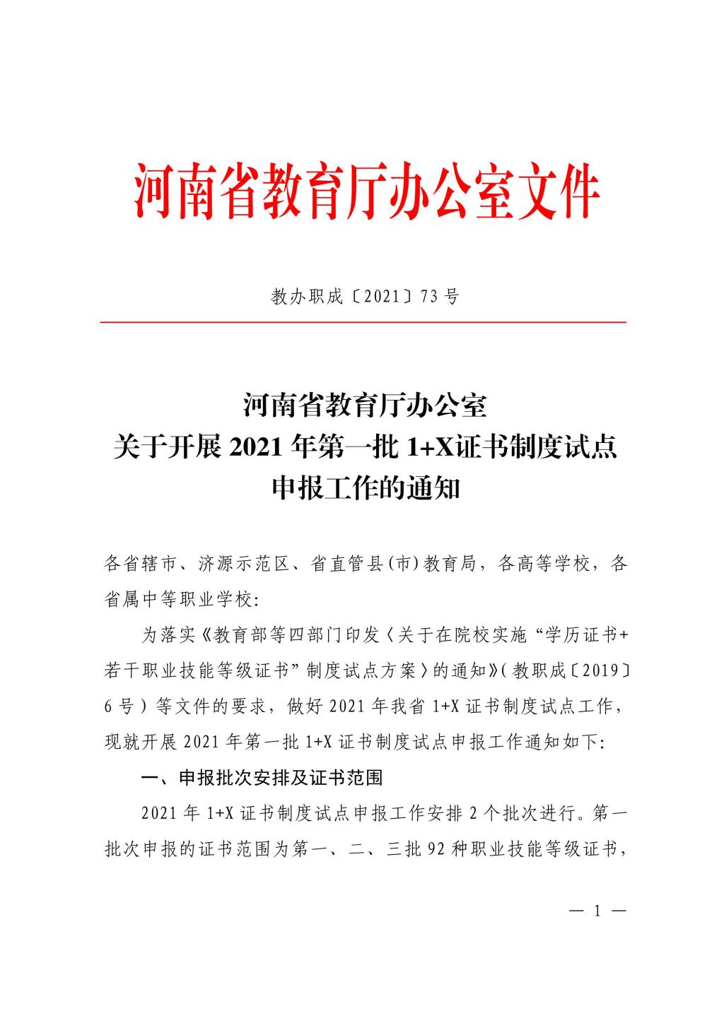 开展2021年第一批次1+X证书制度试点申报工作的通知