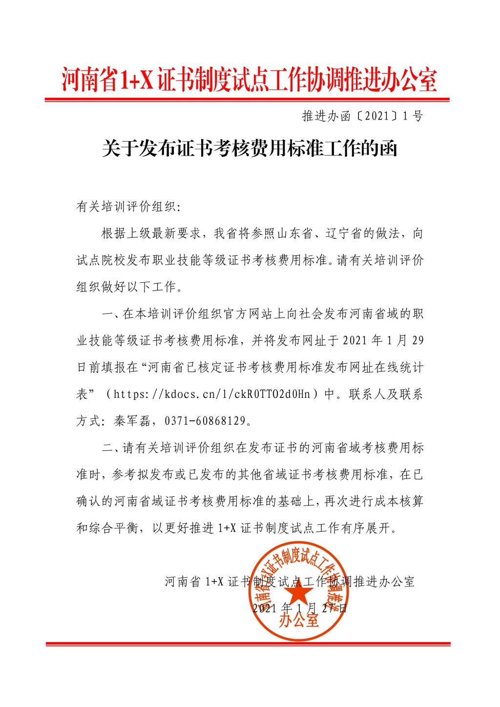 推进办函〔2021〕001号关于发布证书考核费用标准工作