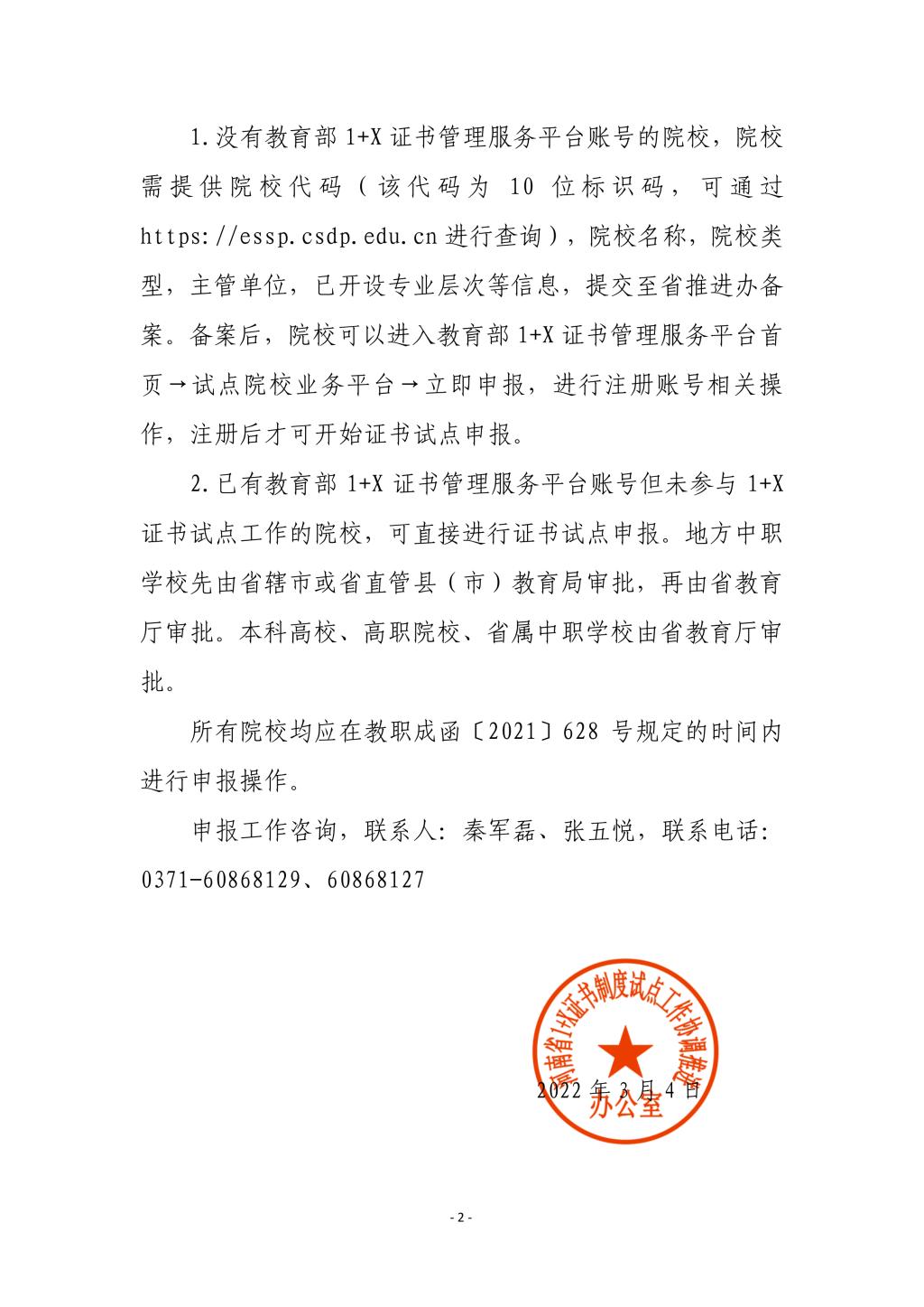 推进办函〔2022〕002号关于1+X证书考核计划申报工作